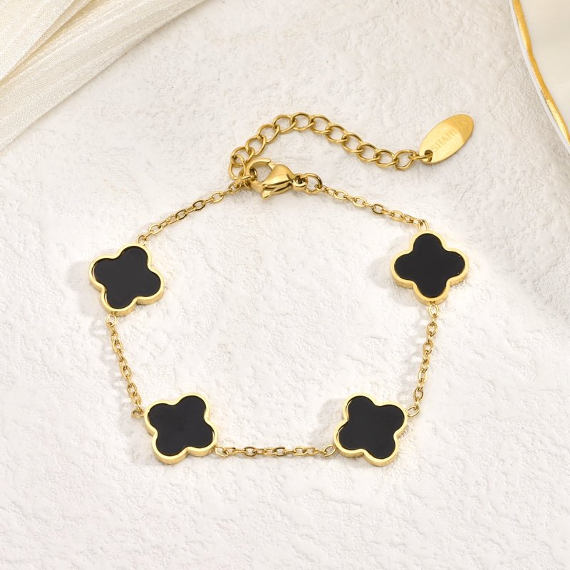 Kleeblatt Armband Schwarz - SHAHDIA